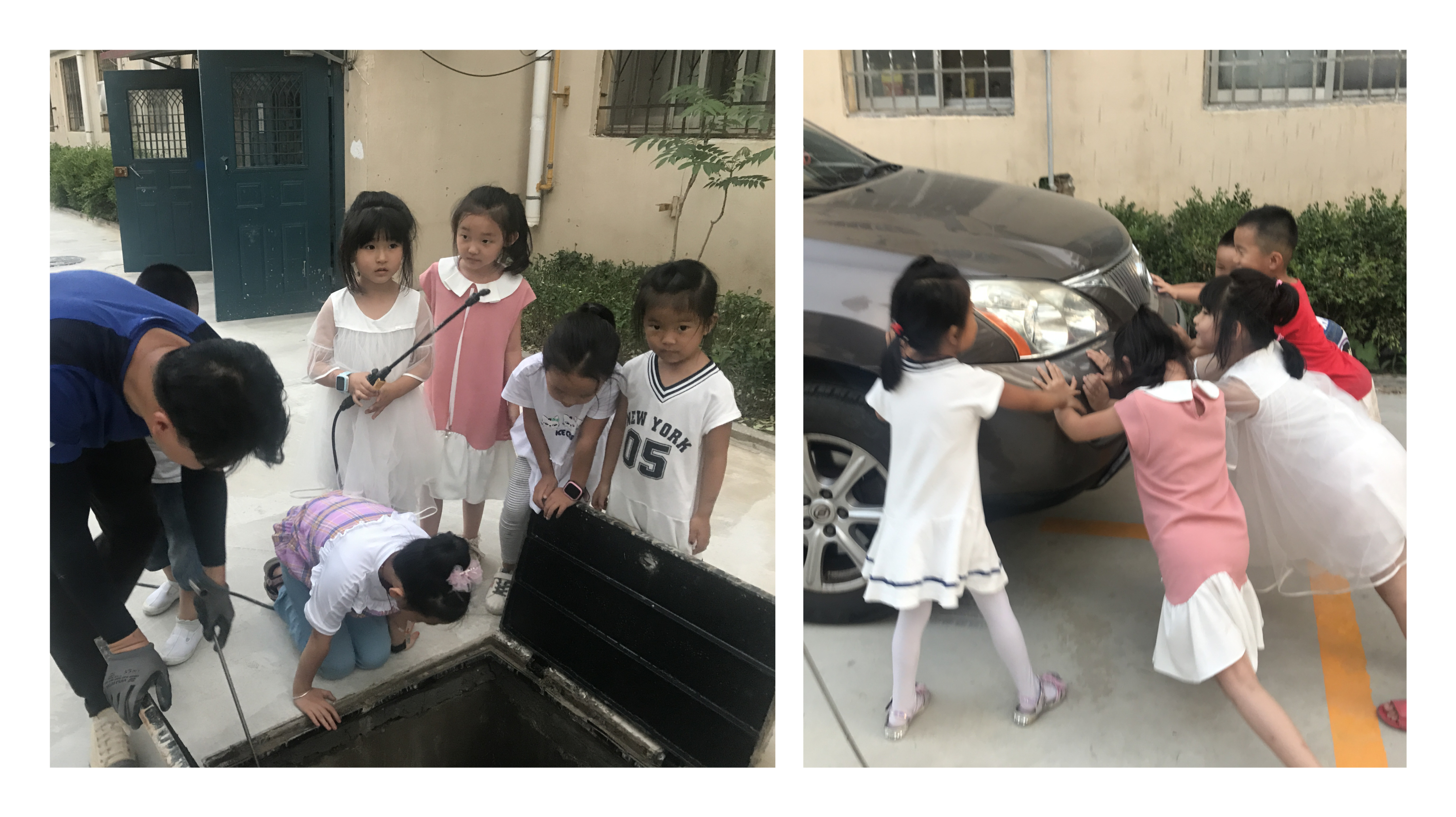 最有意思的是,有個(gè)水表井被車壓住了,孩子們便齊心協(xié)力把車“推走”,“拯救”水表井。果然,還是老話說的好,抄表要從娃娃抓起,哈哈。